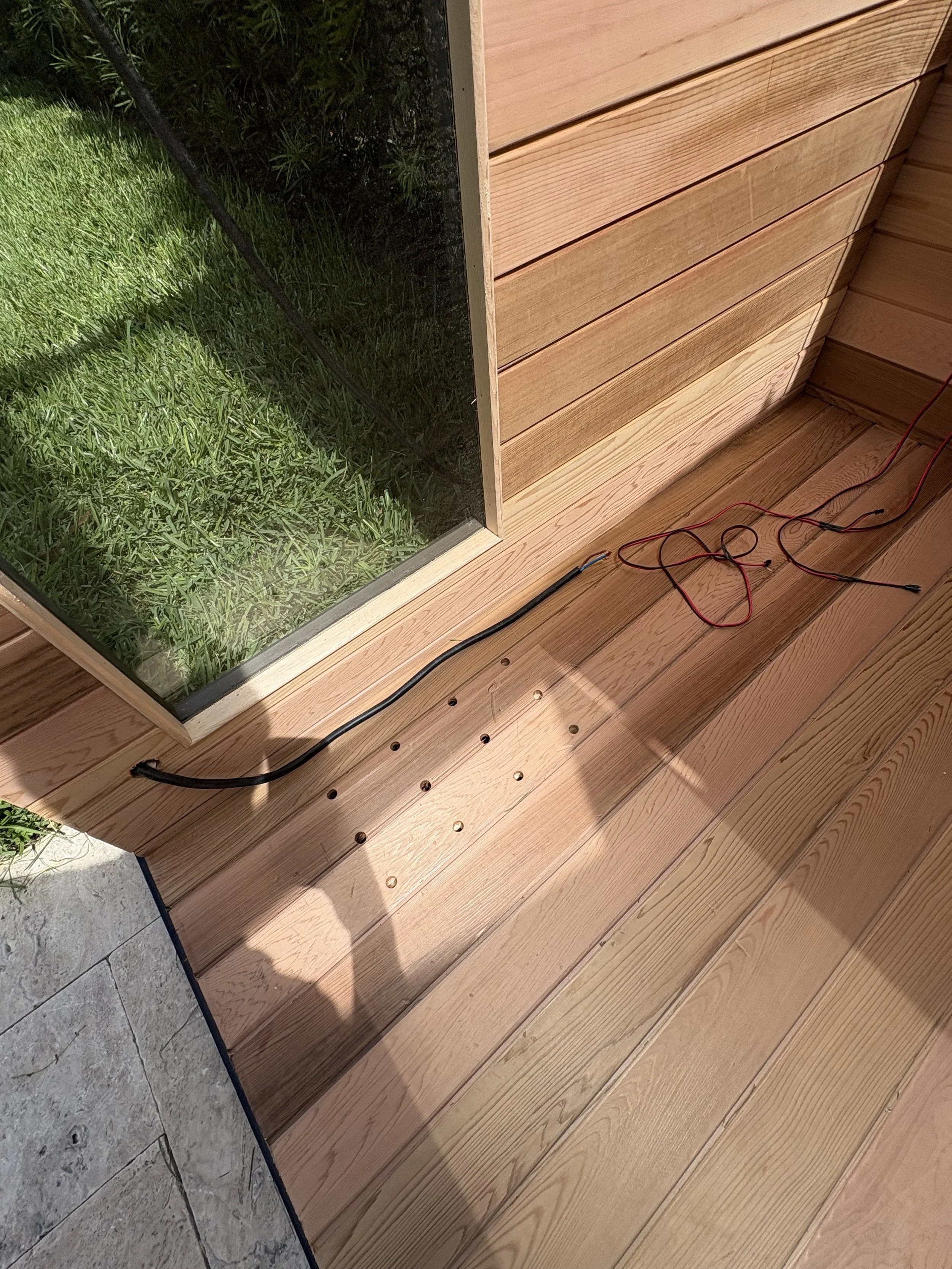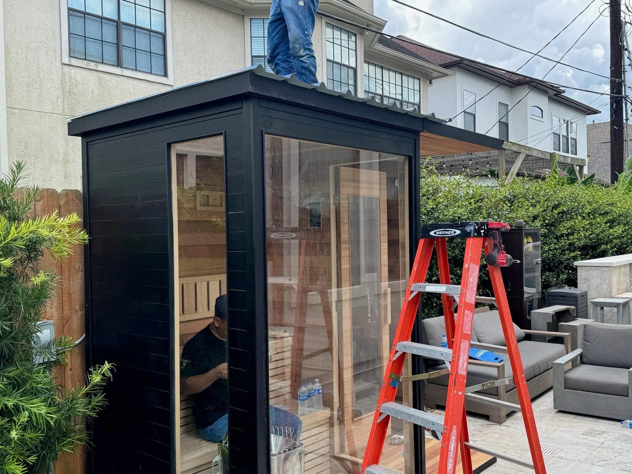 If your sauna has a shower system included, it can connect to a garden hose or outdoor tankless water heater.